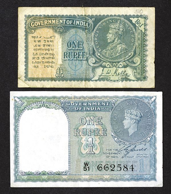 India. Rupee, P-14a, 25a. George V and George VI. Very Good or a bit better and Very Fine. 2 pieces.