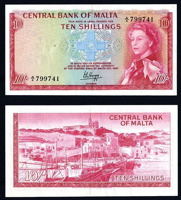 Malta, issued note, 10 Shillings, (1968), P-28a, BWC, choice XF.