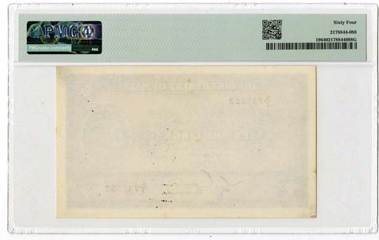 Malta, ND (1940). 10/- Shillings, P-19, Issued Banknote, Blue, violet, and olive underprint with portrait of King George VI at right, Uniface note, S/N A/3 747553, PMG graded Choice Uncirculated 64, Printer: BWC.