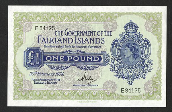 Falkland Islands. 1 Pound. P-8b. 20.2.1974. Elizabeth II at right. Gem Uncirculated. TDLR.