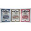 France, 1921. $100, $500, & $1000 Trio of Specimen 7 1/2% Coupon Bonds, Black print with Red, Brown, and Blue borders. All have Specimen overprints and POCs. ABNC. (3). Sold "AS IS" no returns accepted.