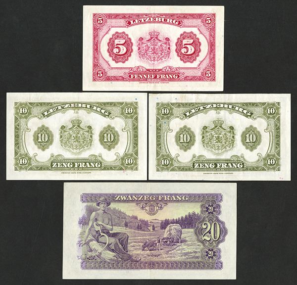 Luxembourg. 5, 10 Francs, 20 Frang. Charlotte on all. All a pleasing Choice Very Fine to Extremely Fine. 4 pieces.
