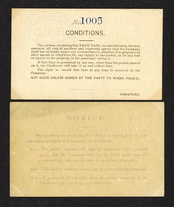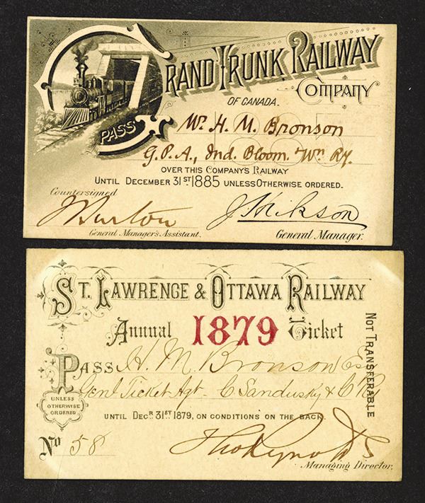 Annual Passes. First with a nice locomotive pictorial and validation stamp on back. Neither endorses by card holder on back. Both formerly mounted in album with corner hinges, slight tone. 2 pieces.