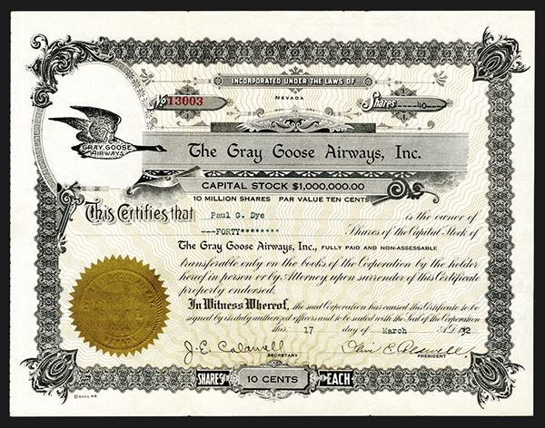 Nevada, 1932, 40 Shares, Issued Stock, Black ornate border with gold seal, Company logo top left, VF condition.