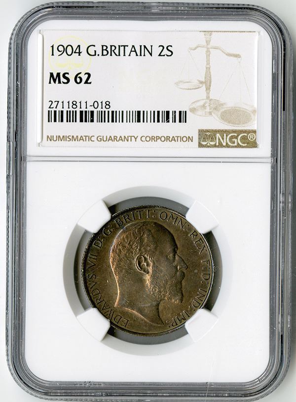 Great Britain, 2 Shillings (Florin), 1904, KM# 801, NGC graded MS 62 (2711811-018). Scarce
