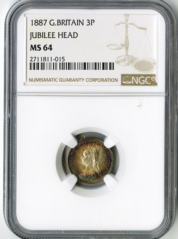 Great Britain, 3 Pence, 1887, KM# 758, NGC graded MS 64 (2711811-015).