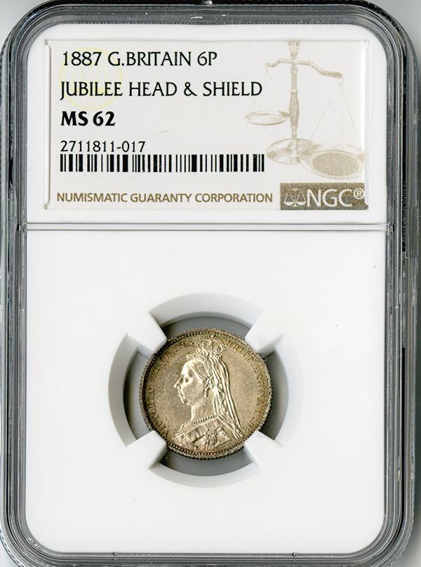 Great Britain, 6 Pence, 1887, KM# 759, NGC graded MS 62 (2711811-017).