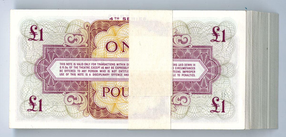 Great Britian, ND (1962). 1 Pound, P-M36a (96), Fourth Series Issued Banknote Assortment, Violet on pale green and lilac underprint, Back is lilac and m/c with denomination at center, S/Ns K/2 268203 to K/2 268298, Banknotes range from UNC to Gem UNC condition. TDLR. (96). Sold "AS IS" no returns accepted.