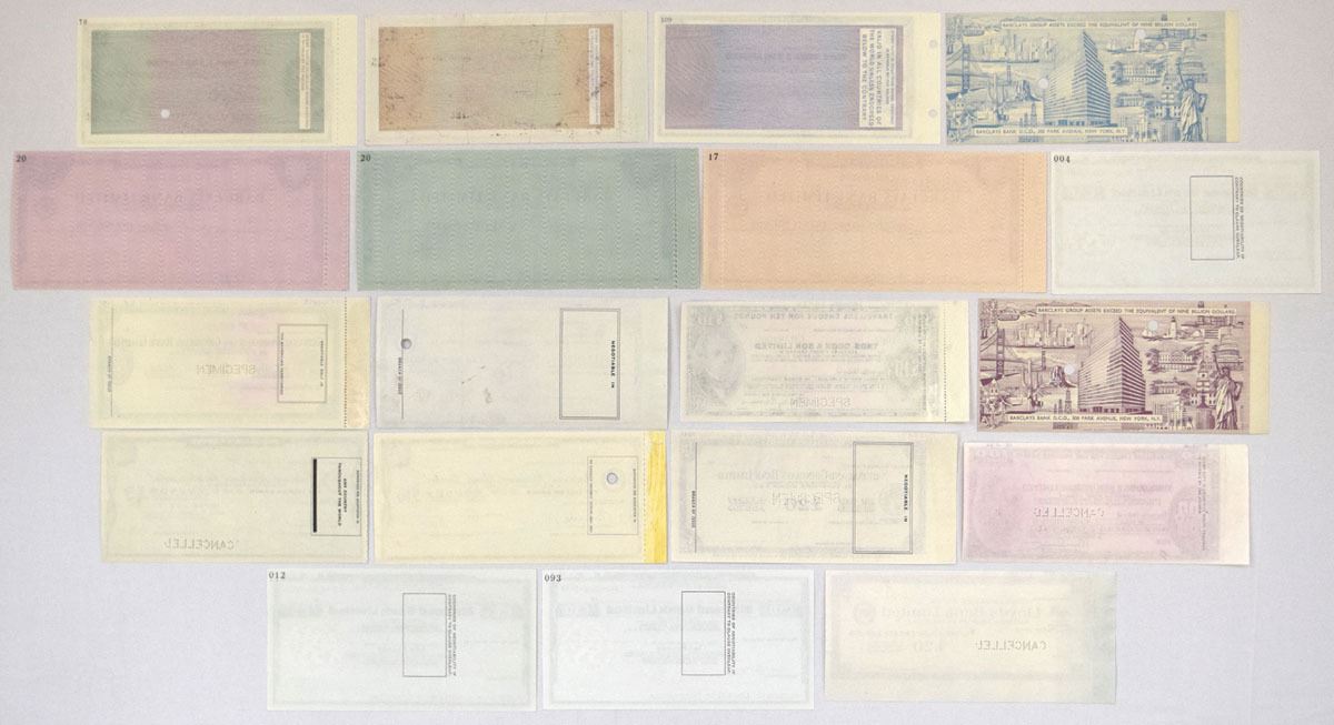 Great Britian, ca.1950-90s. Lot of 19 Specimen Traveler's Checks from National Provincial Bank Ltd., National Overseas and Grindlay's Bank Ltd., Barclays Bank Ltd., Thos. Cook and Son Ltd., and others. Checks are for Pounds and other world currencies, are marked Specimen with overprints and pin punches, and range from UNC to Gem UNC condition. (19). Sold "AS IS" no returns accepted.