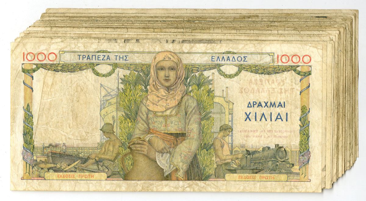Greece, 1935. 1000 Drachmai, P-106a (26), Issued Banknote Assortment, M/c printing with girl in national costume at center, Back is m/c with same girl at center flanked by workers at left and right, Notes range from VF to VF+ condition. (26). Sold "AS IS" no returns accepted.