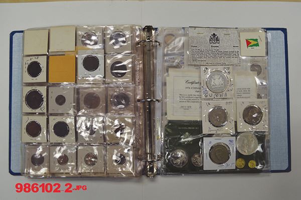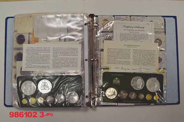 Greenland (2); Guadeloupe (3); Guernsey (62); Essequibo & Demara (5); Guyana (50) including 1976 and 1977 8 piece Franklin Mint Proof set in card (with large silver pieces. 122 pieces.