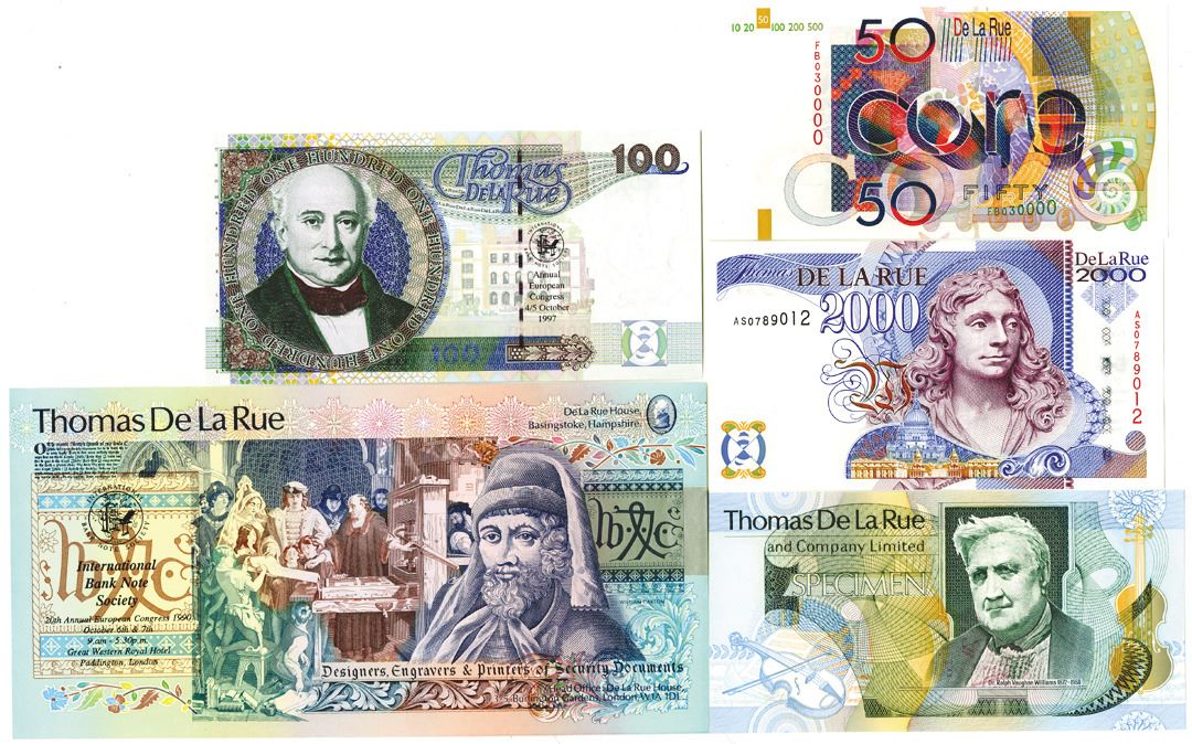 U.K., Lot of 5 advertising notes from the International Bank Note Society, One note is oversized. All notes are Choice Au-UNC condition. (5) (Arthur C. Matz Collection)