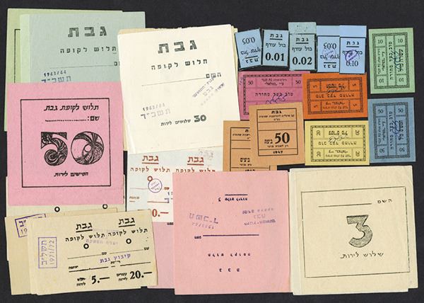 Group Israeli Kibbutz notes. Tender to be used at different locations on different kibbutzs. Dates range from 1963 - 1973, all in very good condition. Lot of 34 pieces.