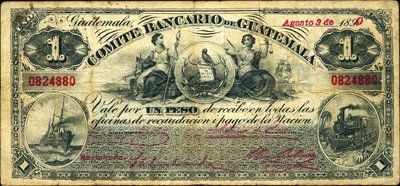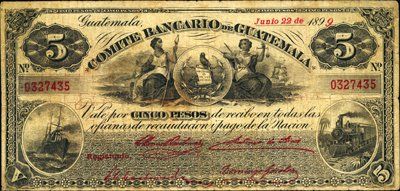1899. P-S191; P-S192. 1; 5 Pesos. 2 different issued banknotes. 1). 1 Peso. Almost fine to Fine condition. Paper clip marks on upper left; 2). 5 Pesos. Fine to Fine+ condition. Rare note from this scarce issue. HBNC