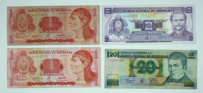 Guyana...., Haiti, and Honduras, 1989-2001. Lot of 11 Issued Banknotes, includes: Bank of Guyana $1, $20. P-21f; 30b1. Banque de la Republique d'Haiti 1, 2, 10 Gourdes. P-191a; 200a; 201; 245a; 256a. Banco Central de Honduras 1, 2, 20 Lempiras. P-72c; 73c; 84a, 84b. Notes range from VF-XF condition. (11). Sold "AS IS" no returns accepted.