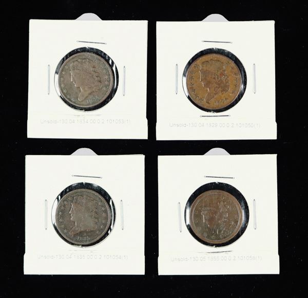 comprising 1829, 1834, 1835, 1855, Fine to very fine, the latter AU. (photo on web site)