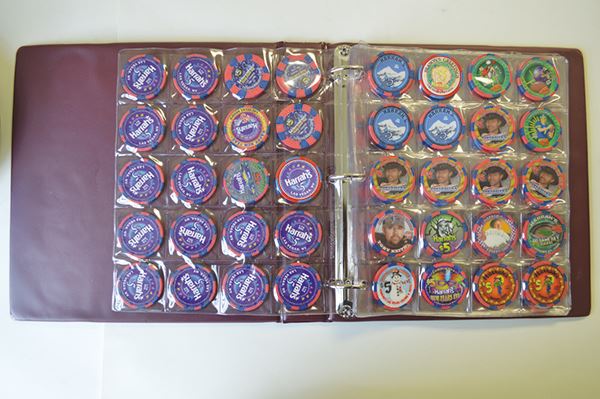 United States $5. Chips From Harrah's. Includes: Millennium, New Year's Eve 2001, 2002, 12 Days of Christmas, Cinco de Mayo 2003, Toby Keith's Bar and Grill, Thanksgiving 2004, Game Day XXXVI, July 4, 2006 and others. Duplicates of many, nearly all are Uncirculated and are housed in a Casino Chip album with 20 chips on a page. 53 pieces.