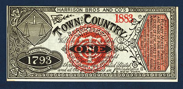 NY and PA. 1883, 1 denomination, black on red, AU-Unc. Printed on thin paper, attractive ad note.