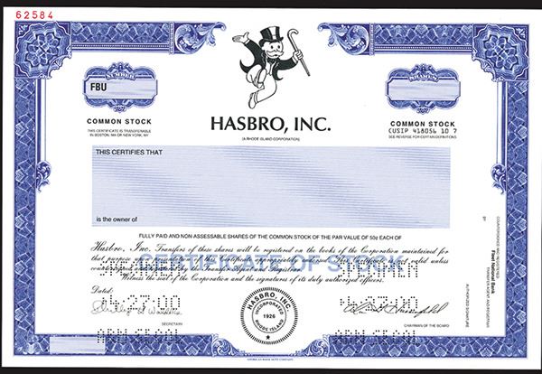 Rhode Island, 2000, Specimen Stock, Black on blue border and underprint, "Monopoly Man" with black top hat top center, VF-XF condition, ABNC.
