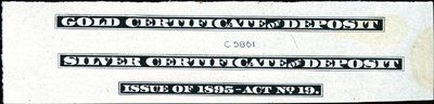 Hawaii. 1897-99. Compound proof on india paper of upper text legends for Gold and Silver Certificate of Deposit banknotes. Also includes lower legend that is found on both series "ISSUE OF 1895 - ACT No.19". Extremely rare. Choice Unc. ABNC.
