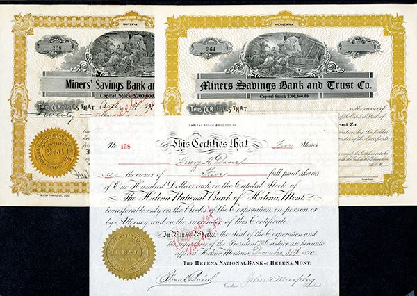 MT. 5 Shrs Stock Certificate I/C of first and 20 Shrs Stock Certificate I/C of second. Very Fine. 2 pieces.