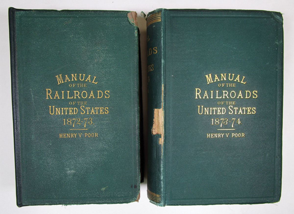 New York, 1872-74. Lot of 2 Manuals of US Railroads, The first is intact and the second has a broken spine, Both books are filled with numerous illustrated advertisements of the time and have extensive information about railroads and related industries. (2) Sold "AS IS" no returns accepted.