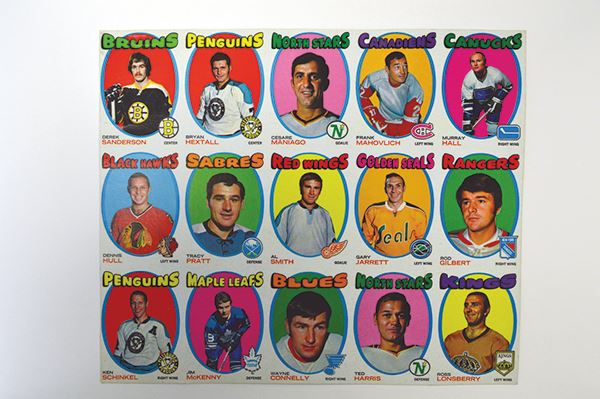 1972. T.C.G. imprint. As printed. Featuring: Rod Gilbert, Frank Mahovich, Dennis Hull and Derek Sanderson.