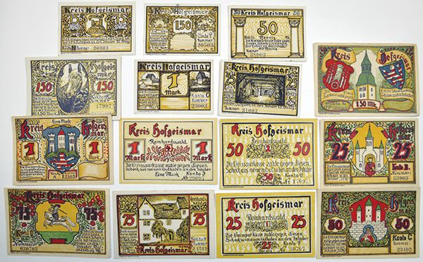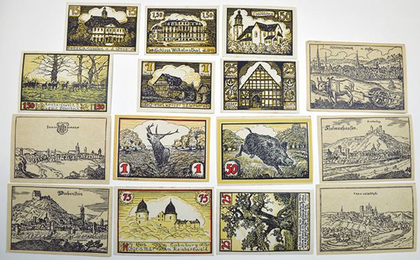 Germany, 1920-22, Lot of 15 different Notgeld. Pfennig and Mark denominations. Several sets from Hofgeismar. Mostly Uncirculated. 15 pieces