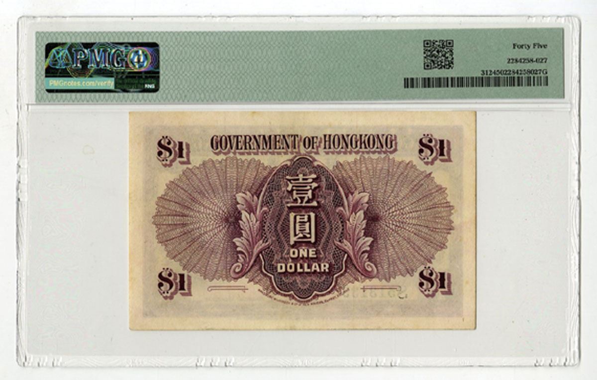 Hong Kong, ND (1936). 1 Dollar, P-312 KNB2a, Issued Banknote, Purple on m/c underprint with portrait of King George VI at right, S/N S513133, PMG graded Choice Extremely Fine 45, BWC.