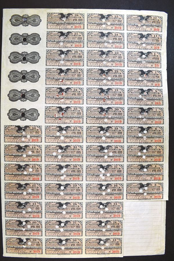Texas. $1000 6% Gold Coupon Bond. Issued. Cancelled. ABNC. POCs. Rough top edge. Cotton Picking vignette. Fine.