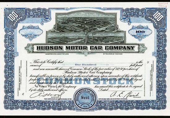 Michigan, 1949, 100 Specimen Shares, Black on blue border and underprint, 3 factory vignettes top center, VF-XF condition, HBNC.