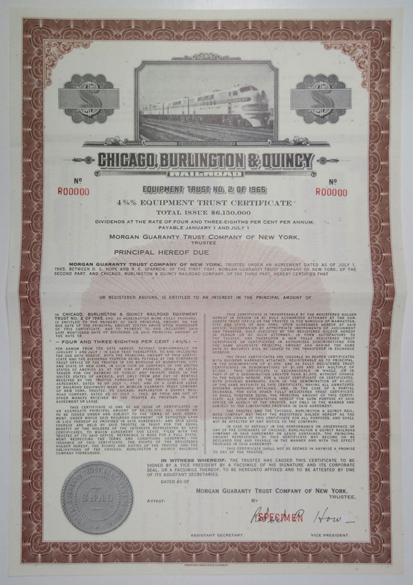 Equipment Trust. The Chicago, Burlington and Quincy Railroad was a railroad that operated in the Midwestern United States.