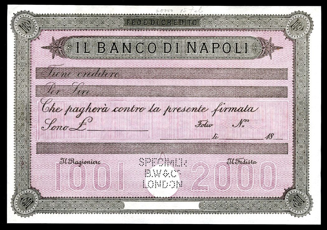 18xx (ca.1860-70's), £ -Odd, Black on light purple underprint. Pin-punch Specimen on bottom middle, BWC. XF.