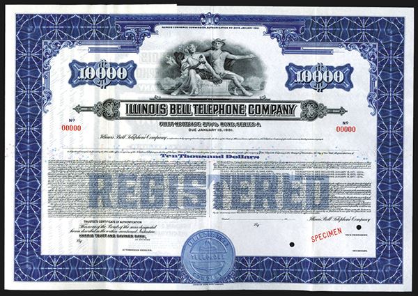 PA. Specimen $10,000 Registered 2 3/4% Bond. Blue border and undertint. Allegorical man and woman at top. POC. XF Condition. ABNC. Rare bond.