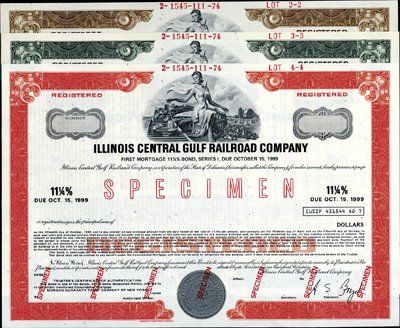ca.1950's-70's. 9 different Specimen Registered Bonds. All different colors and share amounts. All with various vignettes. All in XF condition. Scarce assortment. ABNC.