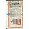 China, 1908. £100 I/U 5% Tientsin-Pukow Railway Coupon Bond, Black text with orange border and undertint. British tax stamp and a 1936 loan modification imprint at top right. VF condition with some writing in pencil, staple holes, staining, and rough edges. W&S.