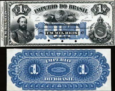 Brazil. ND, (ca.1870). P-A244; A245; A257. 1; 2; 5 Mil Reis. 3 different proof notes printed on india paper with margins cut close and backs cut to shape. All are in AU-Unc. condition. ABNC.
