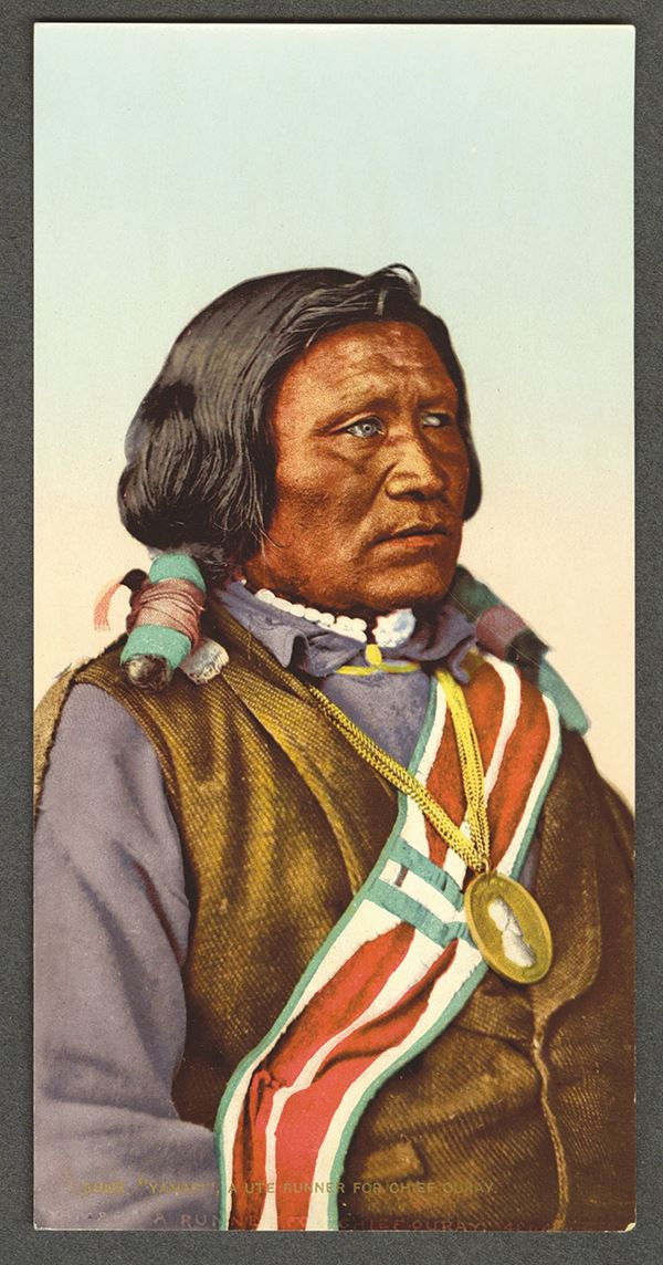 Print (perhaps but from a book, of an Indian chief wearing a Indian Peace Medal (colored as a bi-metallic!). 3-1/2 x 7.