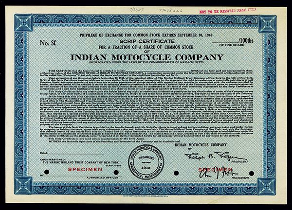 Massachusetts, 1947, Specimen Stock, 100ths of a share, Black on blue border and underprint, No vignette, POC's and red SPECIMEN overprints, VF-XF condition, SBNC. I of 3 found in archives, all in different colors, so this may possibly be unique.