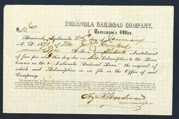 Texas. $10. Installment receipt on loan subscription. Typeset on watermarked graph paper. VF.