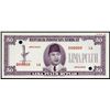 ND, (ca.1949). Series 1-A. P-Unlisted, 50 Rupiah. Essay specimen banknote of a Security BNC proposed and never issued 1948 Indonesia banknote Series. Red specimen overprints, POC's and "00000" serial numbers. Small red printing on upper right margin of face reads " 12-21-49 FP and back "12-21-49 BB. Front is purple, back is olive indigo. Back of note has farmer plowing with oxen. Evidently Indonesia did not accept this issue. Choice Unc. condition. Rare essay note. SBNC.