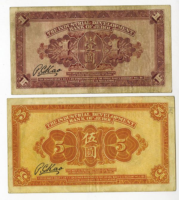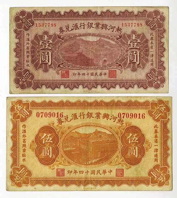 China. Lot of 2 notes, Includes 5 Yuan, P-S2187a S/M#J1-71a, VF; and 1 Yuan, P-S2186a S/M#J1-70a, VF, Attractive and well matched pair. BEPP.