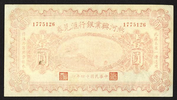 China, 1 Yuan, P-S2186a, Issued banknote printed in unlisted red color, listed as violet in SCWPM. Choice to Gem Uncirculated condition but the front printing is a little light or possibly faded, P.C. Kao signature, S/N 1775126, amazing note in any condition and possibly the finest known for the issue. The PMG census lists 3 additional notes with the highest graded in AU, this note far surpasses that grade. BEPP.