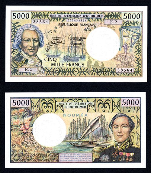 New Caledonia, ND (1982-84), 5000 Franc, P-65c, Issued banknote, Signature 4, m/c, S/N 38564 -K.2, Choice to Gem Uncirculated.