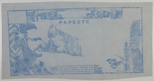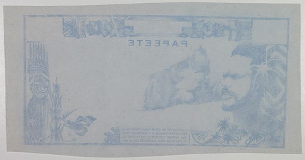 Tahiti. Printer trial of a 500 Francs, ND (1970-1985), cf. P-25, uniface, blue ink on bluish paper, About to Choice Unc. Unusual.