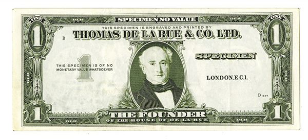 Thomas De La Rue & Co., Ltd. "The Founder" Advertising Note, ca. 1930's.