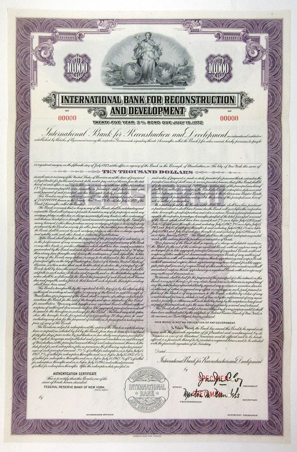 $10,000 Registered 3% Specimen Bond, Black print on purple border and under tint, Allegorical woman at top, Specimen overprints and POC's, VF-XF condition, ABNC.