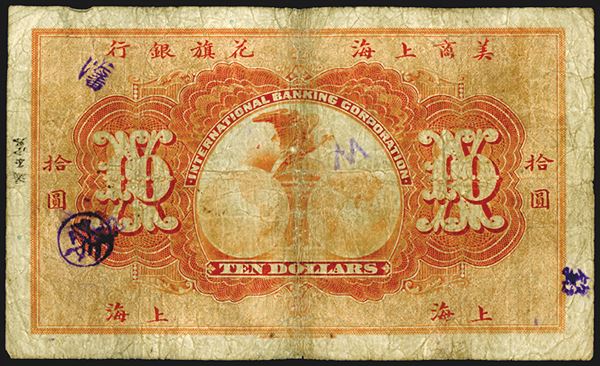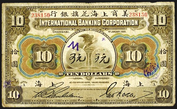 Shanghai Branch, 1905, $10, P-S420 (S/M#M10-3), Issued banknote, Brown on m/c face and orange back, Fine condition. ABNC.