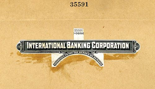 Proof vignette printed on india paper on manila folder with plate numbers and additional archival production information on the back, Plate # 85591, Similar but slightly different to the titles used on the issued banknotes. This would be considered an essay or unused design. ABNC. Unique proof in archives.
