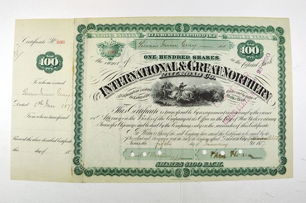 Texas. 100 Shrs Stock Certificate. Issued/cancelled. Continental Bank Note Co. Very Fine.